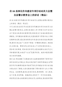 在XX县深化作风建设专项行动动员大会暨全县警示