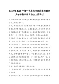 在XX镇2026年第一季度党风廉政建设暨党员干部警示