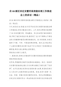 在XX新区回迁安置村高效能治理工作推进会上的讲话(精品)