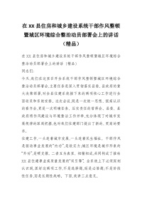 在XX县住房和城乡建设系统干部作风整顿暨城区环境综合整治动员部署会上的讲话(精品)