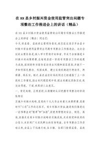在XX县乡村振兴资金使用监管突出问题专项整治工作推进会上的讲话(精品)