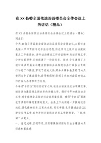 在XX县委全面依法治县委员会全体会议上的讲话(精品)