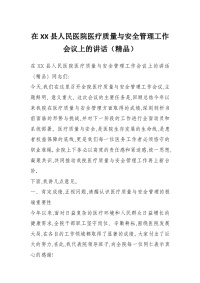 在XX县人民医院医疗质量与安全管理工作会议上的讲话(精品)