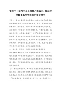 党的二十届四中***精神心得体会:扛起时代赋予基层党组织的使命担当