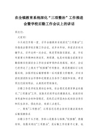 系统深化“三项整治”工作推进会暨学校后勤工作会议上的讲话