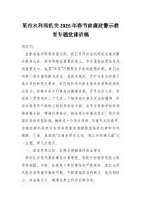 某市水利局机关2026年春节前廉政警示