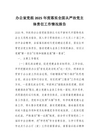 办公室党组2025年度落实全面从严治党主体责任工作情况
