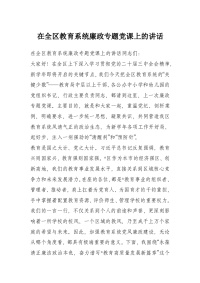 系统廉政专题党课上的讲话