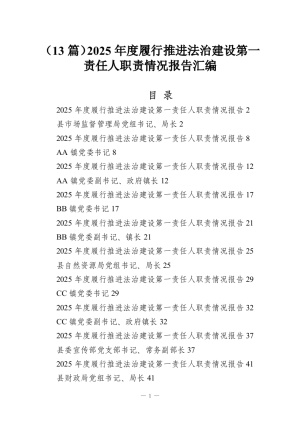 (13篇)2025年度履行推进法治建设第一责任人职责情况