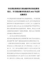 市纪委监委派驻交通运输系统纪检监察组组长、市交通运输局党组成员2025年述责述廉
