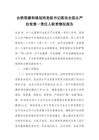 自然资源和规划局党组书记落实全面从严治党第一责任人职责情况