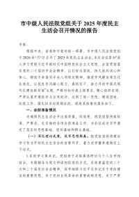 市中级人民法院党组关于2025年度民主生活会召开情况的