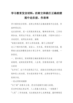 学习教育发言材料:在树立和践行正确政绩观中走在前、作表率