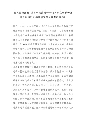 为人民出政绩 以实干出政绩——《关于在全党开展树立和践行正确政绩观学习教育的通知》