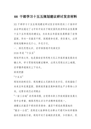 XX 干部学习十五五规划建议研讨发言材料