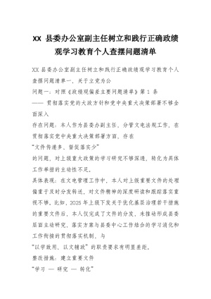 XX 县委办公室副主任树立和践行正确政绩观学习教育个人查摆问题清单