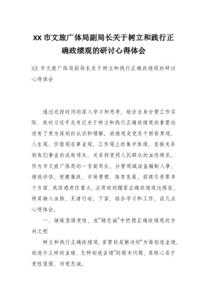 XX市文旅广体局副局长关于树立和践行正确政绩观的研讨心得体会