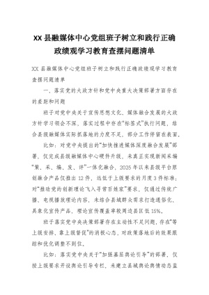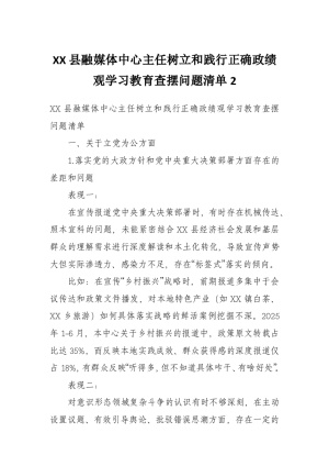 XX县融媒体中心主任树立和践行正确政绩观学习教育查摆问题清单2
