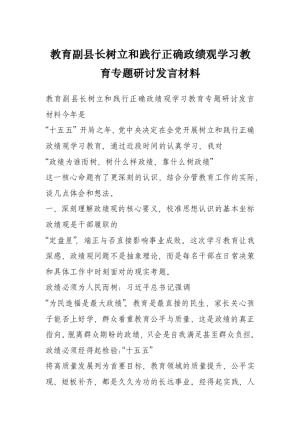 教育副县长树立和践行正确政绩观学习教育专题研讨发言材料