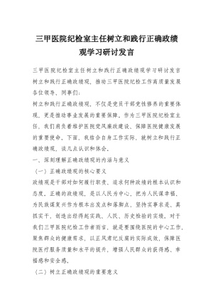 三甲医院纪检室主任树立和践行正确政绩观学习研讨发言