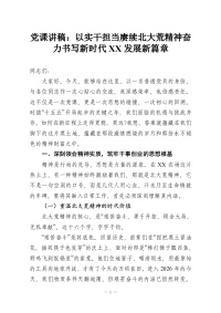 党课讲稿:以实干担当赓续北大荒精神奋力书写新时代XX发展新篇章