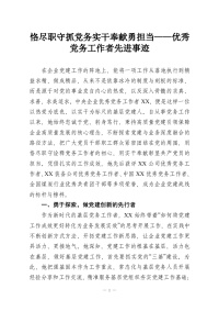 笃信实干聚力为民——优秀党务工作者XX同志先进事迹