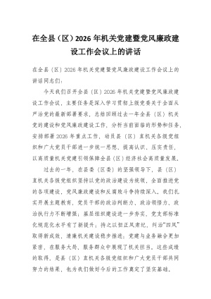 在全县(区)2026年机关党建暨党风廉政建设工作会议上的讲话