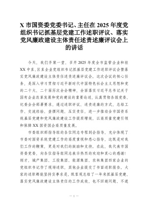 XX市国资委党委书记、主任在2025年度党组织书记抓基层党建工作述职评议、落实党风廉政建设主体责任述责述廉评议会上的讲话2