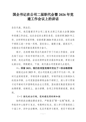 国企书记在公司二届职代会暨2026年党建工作会议上的讲话