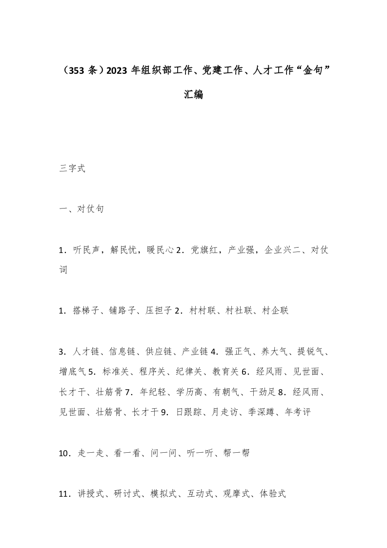 353条2023年组织部工作、党建工作、人才工作“金句”汇编
