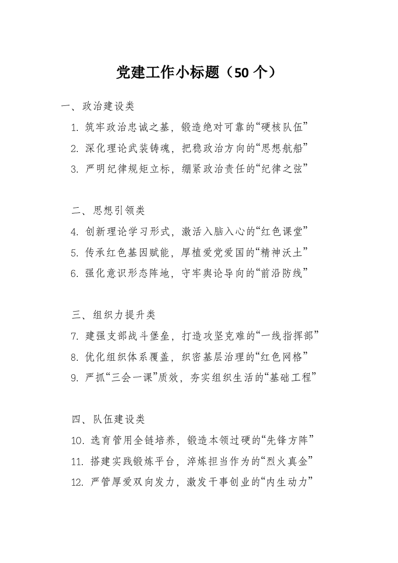 党建工作小标题(50个)