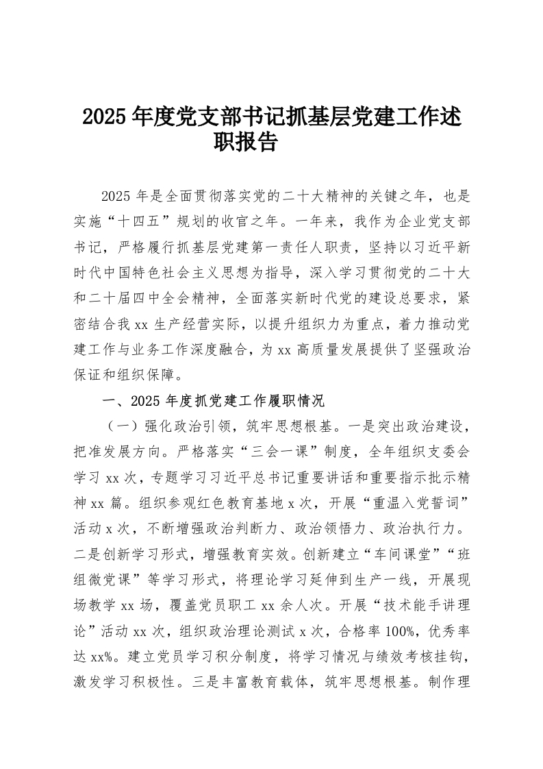 首页精选范文2025年度党支部书记抓基层党建工作述职报告
