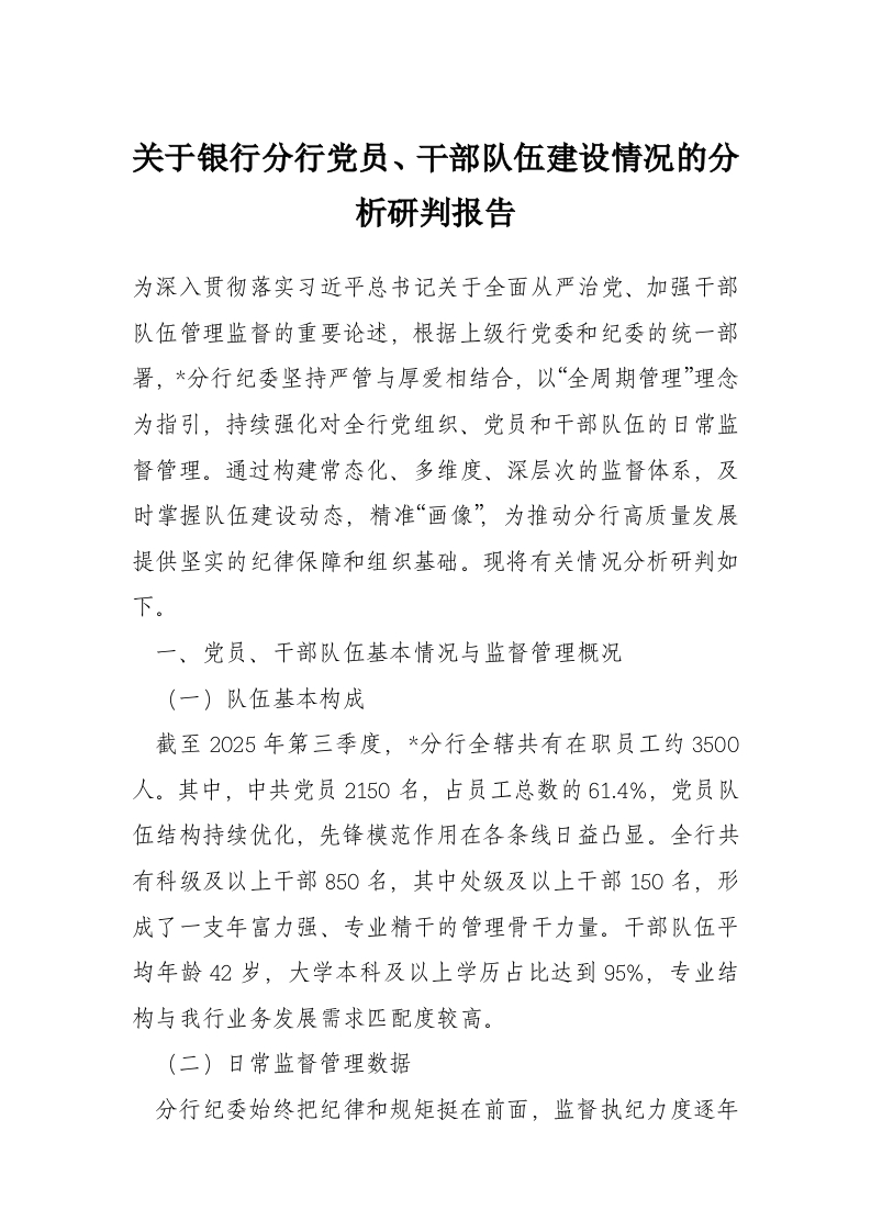 关于银行分行党员、干部队伍建设情况的分析研判报告