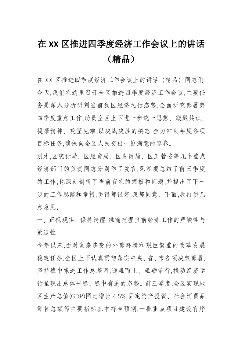 在XX区推进四季度经济工作会议上的讲话(精品)