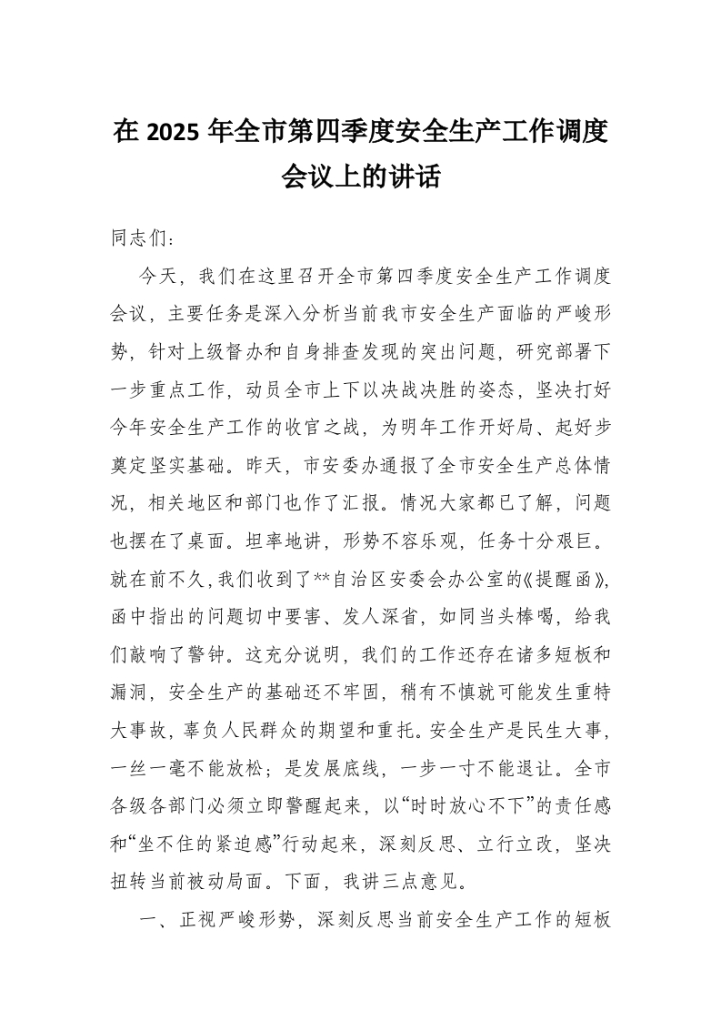 在2025年全市第四季度安全生产工作调度会议上的讲话