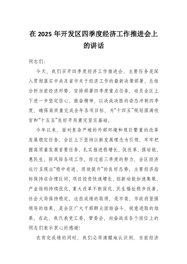 首页材料汇编在2025年开发区四季度经济工作推进会上的讲话