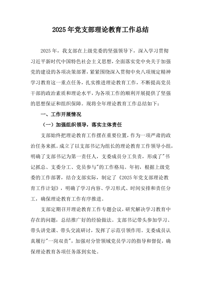 首页工作文档2025年党支部理论教育工作总结