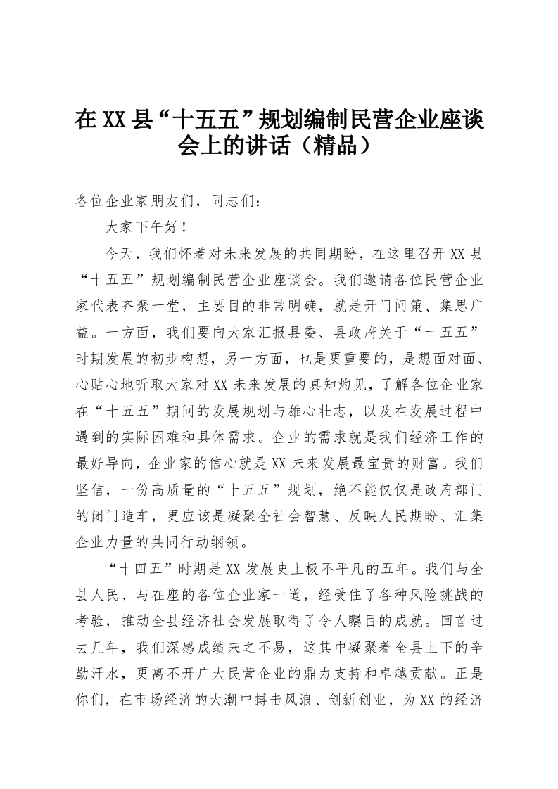 在XX县“十五五”规划编制民营企业座谈会上的讲话(精品)
