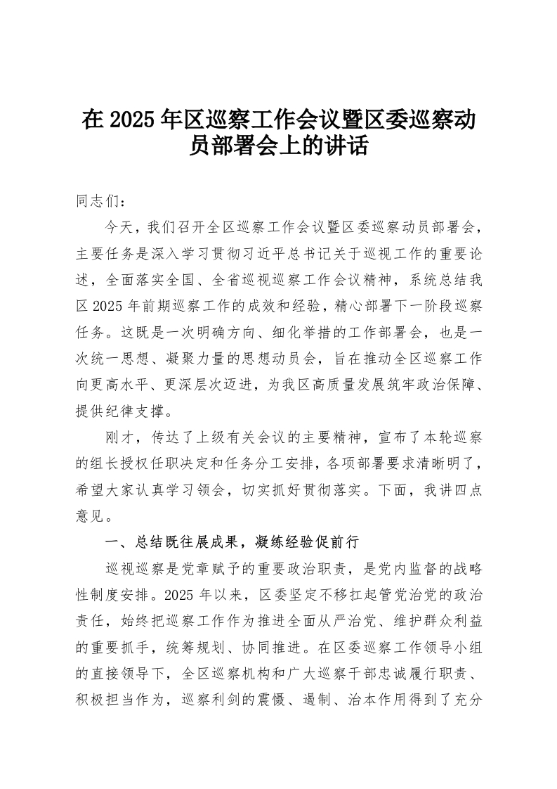 在2025年区巡察工作会议暨区委巡察动员部署会上的讲话
