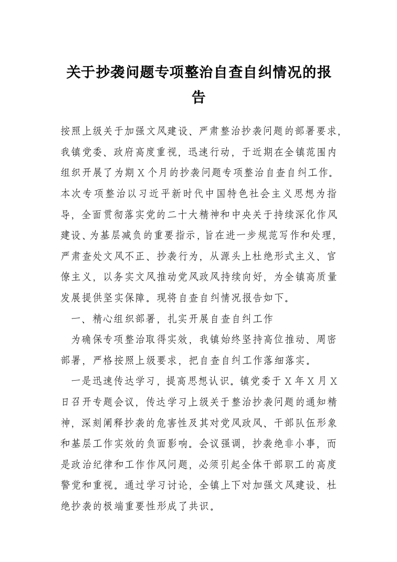 关于公文抄袭问题专项整治自查自纠情况的报告