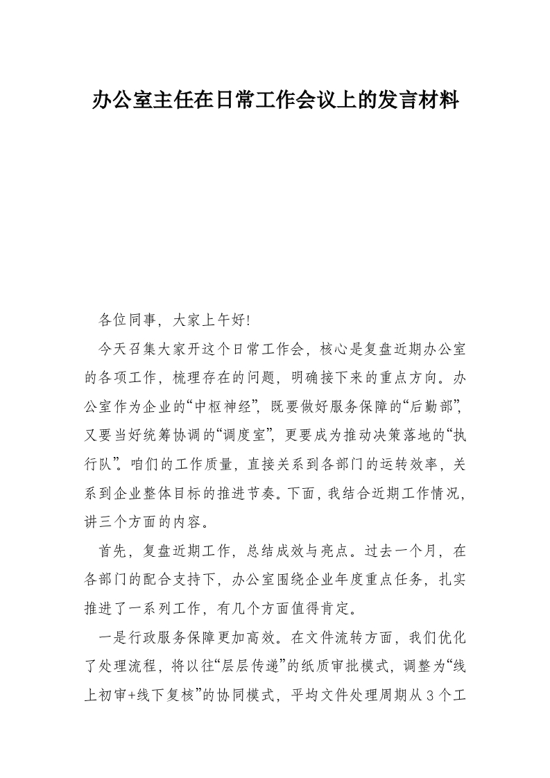 首页讲课讲稿办公室主任在日常工作会议上的发言材料