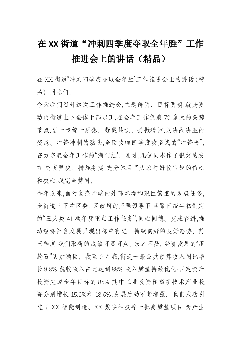 在XX街道“冲刺四季度夺取全年胜”工作推进会上的讲话(精品)