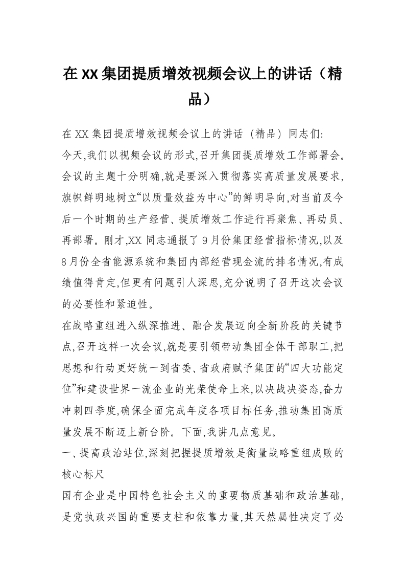 首页材料汇编在XX集团提质增效视频会议上的讲话(精品)