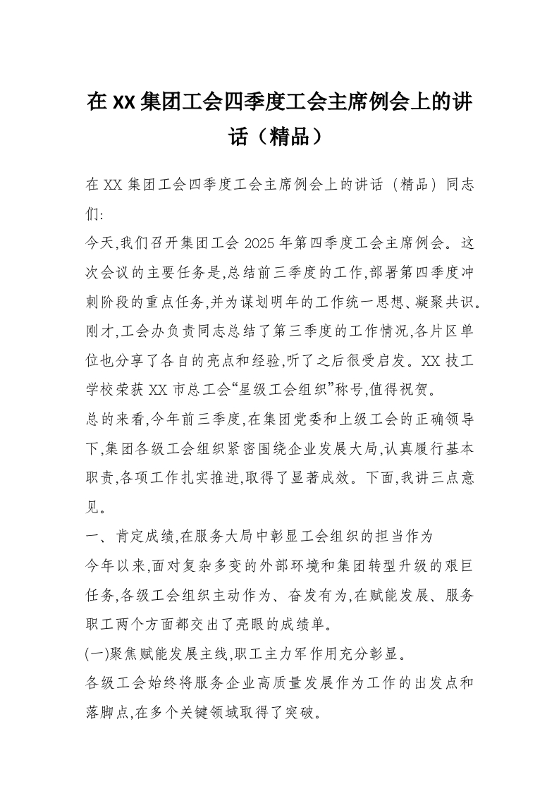 在XX集团工会四季度工会主席例会上的讲话(精品)