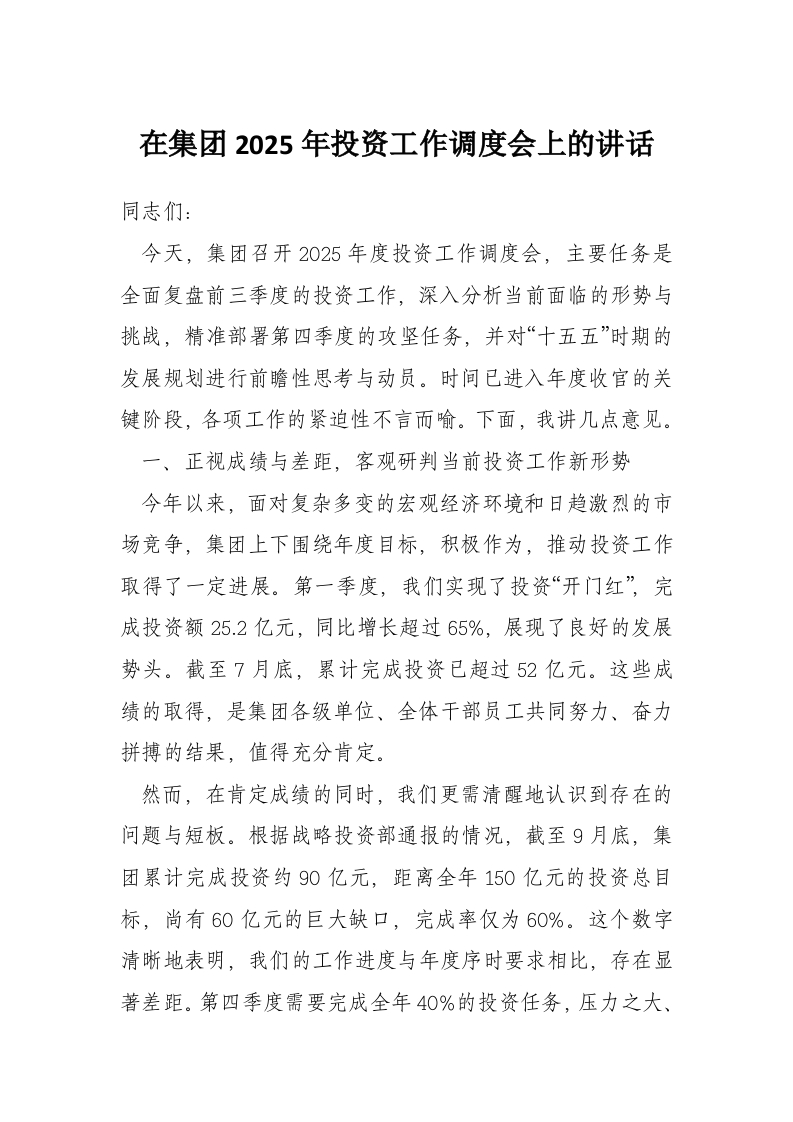 首页学习提升在集团2025年投资工作调度会上的讲话