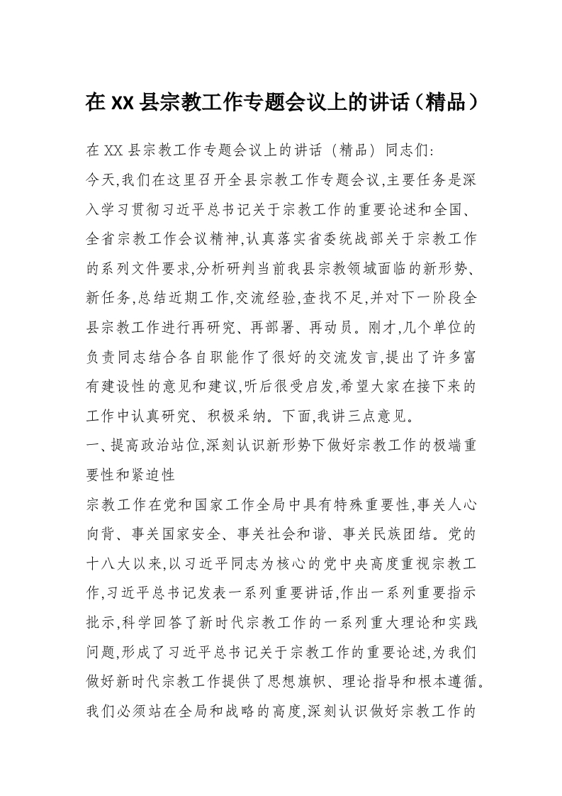 首页学习提升在XX县宗教工作专题会议上的讲话(精品)