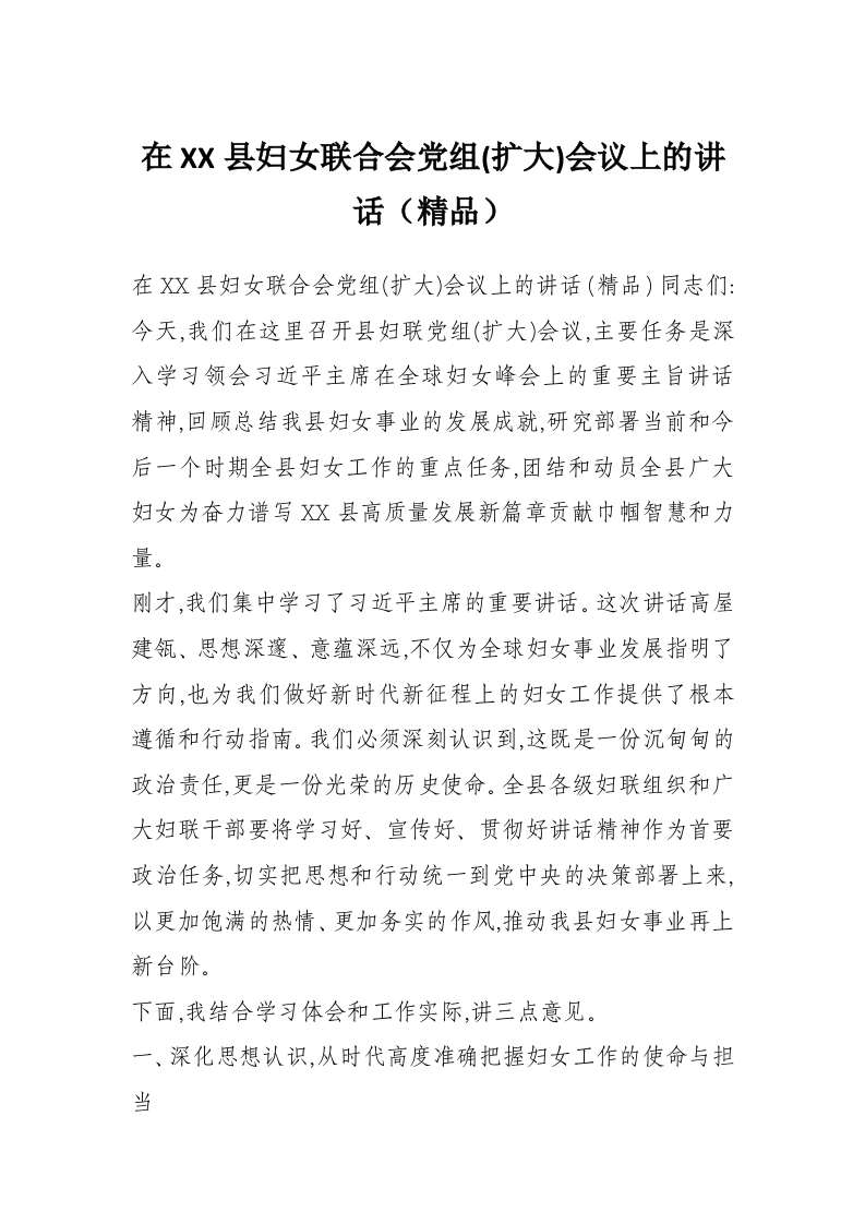 在XX县妇女联合会党组(扩大)会议上的讲话(精品)