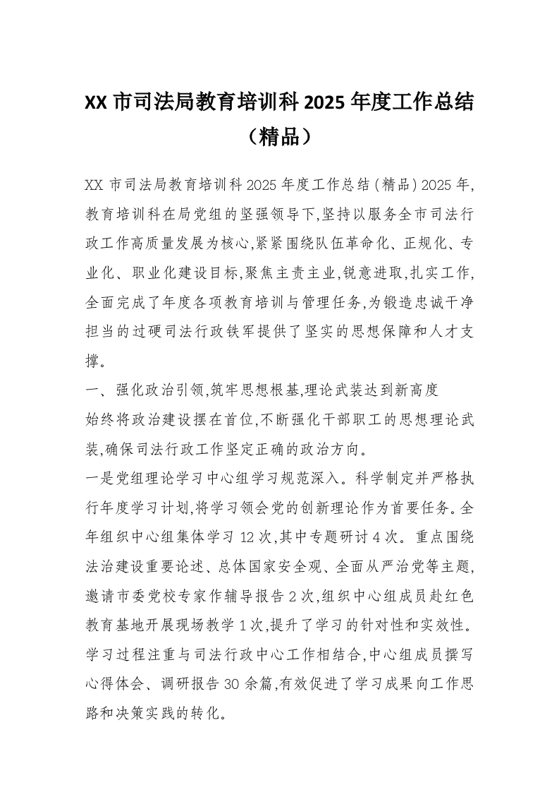 XX市司法局教育培训科2025年度工作总结(精品)