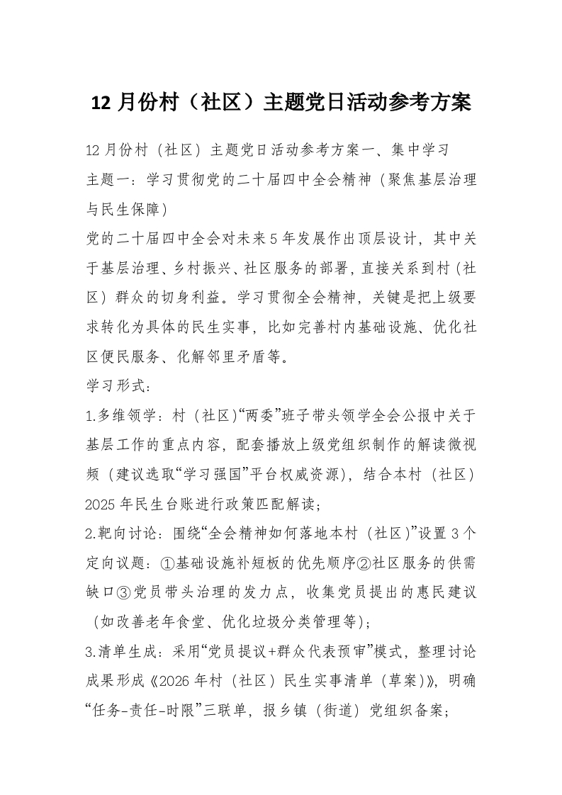 首页写作素材12月份村(社区)主题党日活动参考方案