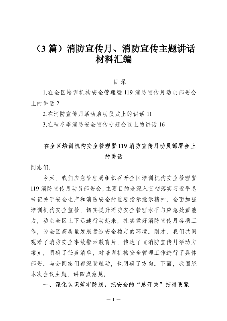 (3篇)消防宣传月、消防宣传主题讲话材料汇编